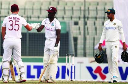 আগেরদিন করা ৫ উইকেটে ২২৩ রান নিয়ে আজকের দিনের খেলা শুরু করেছে ওয়েস্ট ইন্ডিজ। কুয়াশাচ্ছন্ন সকালে আজ শুরু থেকেই চেপে ধরবে বাংলাদেশ- এমনটাই ছিল সকলের প্রত্যাশা। কিন্তু হয়েছে ঠিক উল্টোটা। আবু জায়েদ রাহী, তাইজুল ইসলামদের আলগা বোলিংয়ের সুযোগ কাজে লাগিয়ে দিনের শুরু থেকেই সহজ রান পেয়েছেন এনক্রুমাহ বোনার ও জশুয়া ডা সিলভা।