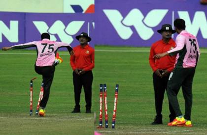 এর একদিন পরই মাঠে কী না করলেন সাকিব! স্ট্যাম্পে লাথি মারলেন, আম্পায়ারের সঙ্গে বাজে ব্যবহার করলেন, স্ট্যাম্প উপড়েও ফেললেন, মাঠের বাইরে আবাহনীর কোচ সাবেক তারকা খালেদ মাহমুদ সুজনের সঙ্গেও বাজে আচরণ করলেন।