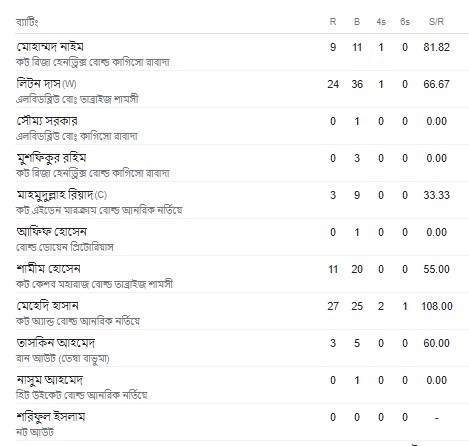 স্পোর্টস ডেস্কঃ দক্ষিণ আফ্রিকার বিপক্ষে চরম ব্যাটিং বিপর্যয়ে ছিল টাইগাররা। এমন কঠিন বিপর্যয়ে দক্ষিণ আফ্রিকার বিপক্ষে টস হেরে প্রথমে ব্যাটিংয়ে নেমে ৮৪ রান করে টাইগাররা।