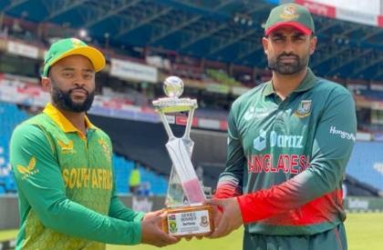 রোববার জোহানেসবার্গে টস জিতে ব্যাটিংয়ে নেমে চরম বিপর্যয়ে পড়ে যায় বাংলাদেশ দল। ১২.৪ ওভারে ৩৪ রানেই ৫ উইকেট হারিয়ে কোণঠাসা হয়ে পড়ে তামিম ইকবালের নেতৃত্বাধীন দলটি।
