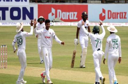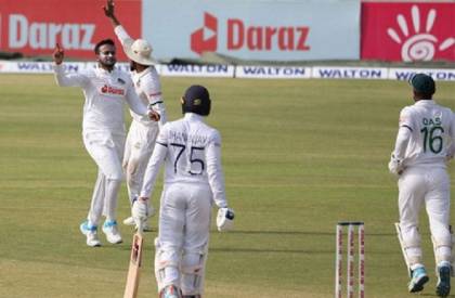 চট্টগ্রামে শ্রীলঙ্কা দলের প্রথম ইনিংস ম্যাথিউসের আউটের মধ্যে দিয়ে গুটিয়ে যায়। ৩৯৭ রানে থামল সফরকারীরা। বাংলাদেশের হয়ে প্রায় ১৫ মাস পর খেলতে নেমে বল হাতে একাই ৬ উইকেট শিকার করলেন নাঈম। সাকিব নিয়েছেন ৩টি, বাকি ১টি তাইজুলের।