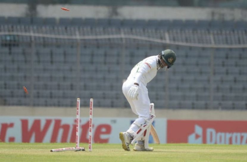 ক্রীড়া প্রতিবেদক: শ্রীলঙ্কার বিপক্ষে দুই ম্যাচ সিরিজের শেষ টেস্ট ম্যাচ খেলতে সোমবার (২৩ মে) মাঠে নামে স্বাগতিক বাংলাদেশ। মিরপুরের শের-ই-বাংলা স্টেডিয়ামে টস জিতে ব্যাটিং করার সিদ্ধান্ত নেন টাইগার অধিনায়ক মুমিনুল হক। ম্যাচের শুরুতেই কাসুন রাজিথার বলে বোল্ড হয়ে গেলেন মাহমুদুল হাসান জয়। প্রথম ওভারের দ্বিতীয় বলে পেছনে গিয়ে খেলতে চান জয়, তবে পা আটকে থাকে ক্রিজেই। তার ব্যাট ও প্যাডের মাঝে দিয়ে বল চলে যায় স্টাম্পে।