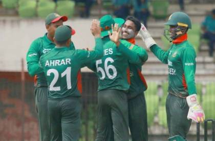 স্পোর্টস ডেস্ক : দক্ষিণ আফ্রিকা অনুর্ধ্ব-১৯ দলের বিপক্ষে পাঁচ ম্যাচ সিরিজের চতুর্থ ম্যাচে জয় পেল বাংলাদেশ অনুর্ধ্ব-১৯ দল। আজকের ম্যাচে জয়ের ভীতটা গড়ে দেন বোলাররা। কিন্তু সহজ লক্ষ্যে ব্যাটিং করতে নেমে ব্যর্থ মিডল অর্ডার। তাতে জেগেছিল হারের শঙ্কা। তবে রাব্বি-বর্ণের দৃঢ়তায় জয় তুলে নেয় বাংলাদেশ।