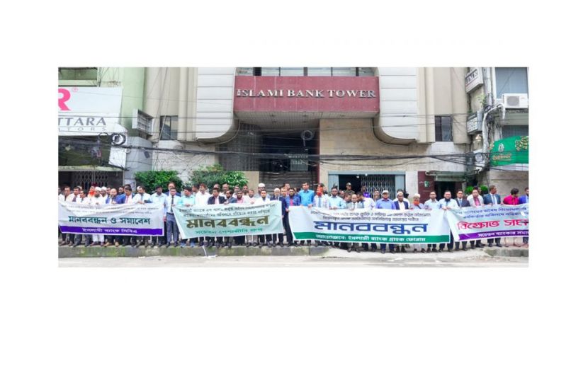 ব্যাংক খাতের অর্থ লুটকারী এস আলম কর্তৃক অবৈধভাবে নিয়োগকৃত অদক্ষ কর্মকর্তা কর্মচারিদের ইসলামী ব্যাংক থেকে অপসারনের দাবীতে ইসলামী ব্যাংক শেয়ারহোল্ডারস ফোরাম আজ ৬ অক্টোবর ২০২৫ সোমবার রাজধানীর দিলকুশায় ইসলামী ব্যাংক টাওয়ারের সামনে মানববন্ধন ও সমাবেশ করে।
