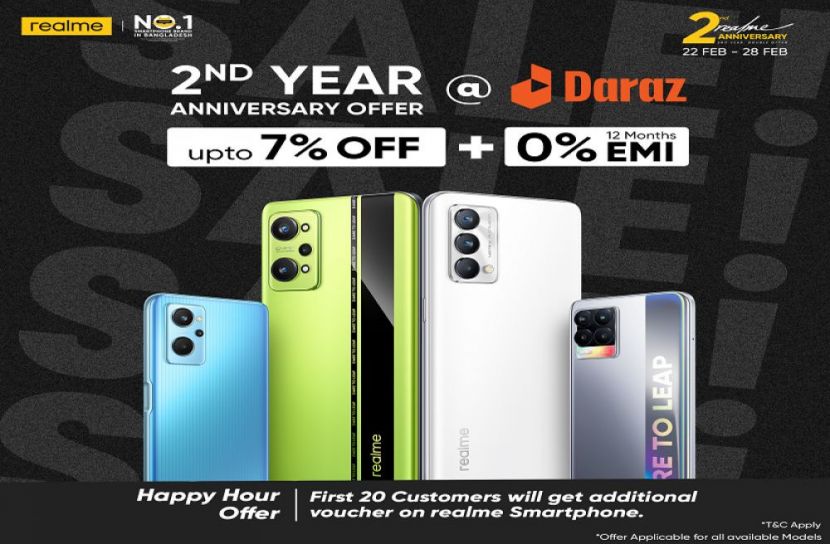 সান নিউজ ডেস্ক: বাংলাদেশে ২য় বর্ষপূর্তি উদযাপন করছে, ক্যানালিসের প্রতিবেদন অনুসারে দেশের সেরা স্মার্টফোন ব্র্যান্ড রিয়েলমি। এ উপলক্ষ্যে গ্রাহকের জন্য দারাজ এবং পিকাবুতে থাকছে ৯% পর্যন্ত ছাড়ের সাথে ক্যাশব্যাক অফার।
