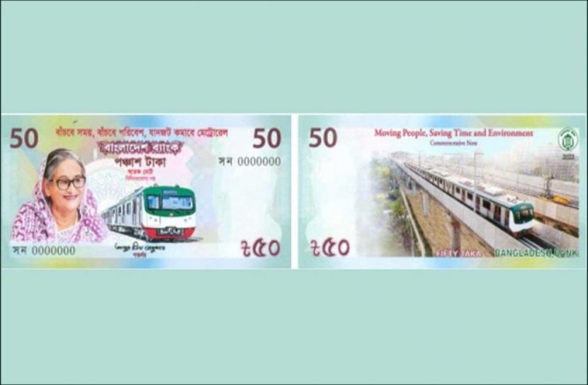বাংলাদেশের প্রথম উড়াল মেট্রোরেলের উদ্বোধন উপলক্ষে মুদ্রিত ৫০ টাকা মূল্যমান স্মারক নোটের ডিজাইন ও নিরাপত্তা বৈশিষ্ট্য হলো- বাংলাদেশ ব্যাংকের গভর্নর আব্দুর রউফ তালুকদার স্বাক্ষরিত ১৩০ মিমি x ৬০ মিমি পরিমাপের এ স্মারক নোটের সম্মুখভাগের বামপাশে গণপ্রজাতন্ত্রী বাংলাদেশ সরকারের প্রধানমন্ত্রীর প্রতিকৃতি এবং ব্যাকগ্রাউন্ডে মেট্রোরেলের ছবি সংযোজন করা হয়েছে।