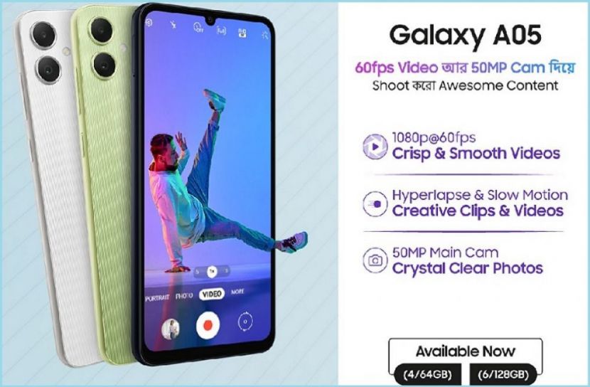নিজস্ব প্রতিবেদক: গ্যালাক্সি ‘অসাম’ এ সিরিজের সর্বশেষ সংযোজন- গ্যালাক্সি এ০৫ বাজারে নিয়ে এসেছে স্যামসাং বাংলাদেশ। দুর্দান্ত ফটোগ্রাফি সক্ষমতা ও দীর্ঘস্থায়ী ব্যাটারির সমন্বয়ে নতুন এ ডিভাইসটি ব্যবহারকারীদের স্মার্টফোনে কনটেন্ট দেখার ও ব্যবহারের অভিজ্ঞতাকে এক নতুন মাত্রায় পৌঁছে দেবে।